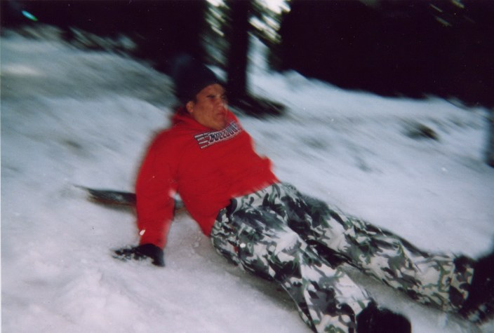 Big B was snow skating and fell